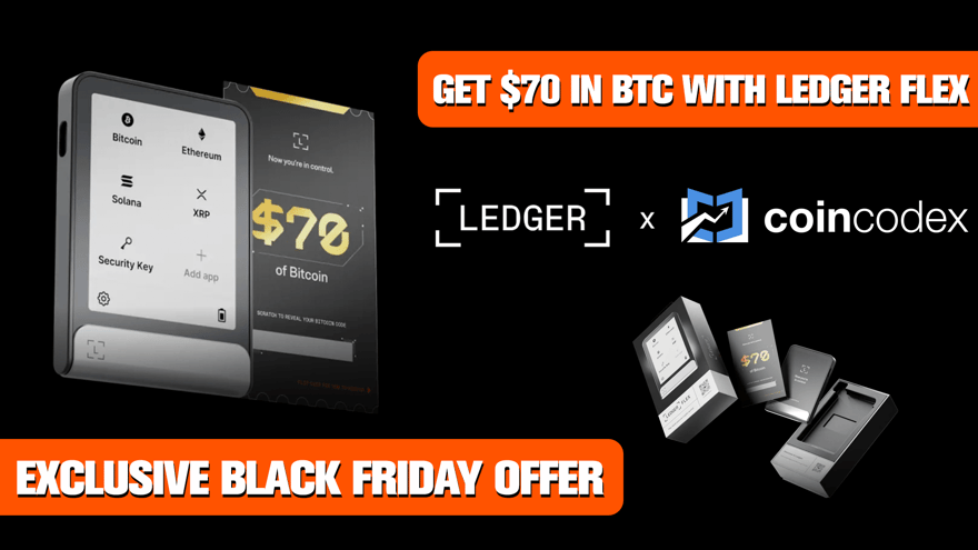 | | π EXCLUSIVE Black Friday Promotion Buy a Ledger Flex hardware wallet and get $70 worth of Bitcoin for FREE! | If you order a Ledger Flex hardware wallet during the promotion period you get $70 worth of Bitcoin as a bonus. Here's what you should do: Visit Ledger EXCLUSIVE Black Friday offer page Order your Ledger Flex wallet Use the gift card inside the box to claim $70 worth of Bitcoin | | Get FREE $70 in BTC | Available for limited period of time. Learn more about the Ledger Flex in our review. |