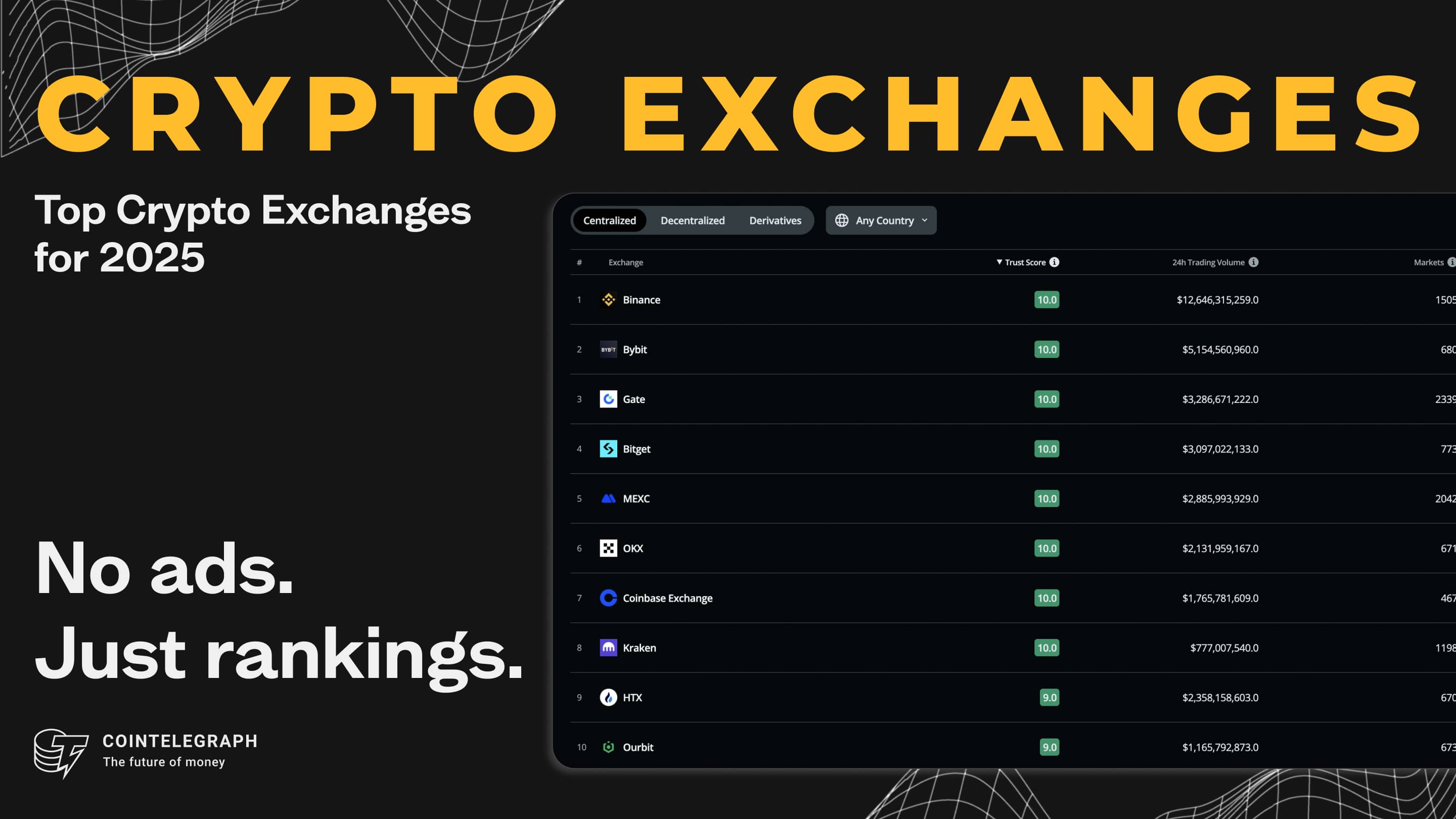 Solana's back above $200, but traders aren't celebrating yet. After a brutal $1.7B liquidation wiped out long positions, network activity has cooled and rivals like BNB Chain and Hyperliquid are catching up fast. The metrics that once screamed "bullish" are flashing mixed signals—and $300 might be out of reach without a serious catalyst. | | | | | | | | | [Crypto Exchanges] | | | | Discover the Most Trusted Crypto Exchanges — All in One Place Cointelegraph's Crypto Exchanges Ranking platform lets you compare exchanges by trust score, volume, and listed coins — fast. It's the go-to hub for traders and exchanges alike to build credibility, visibility, and trust. | | | | | | | | | NYC Locks in a Crypto Legacy Before Adams Exits